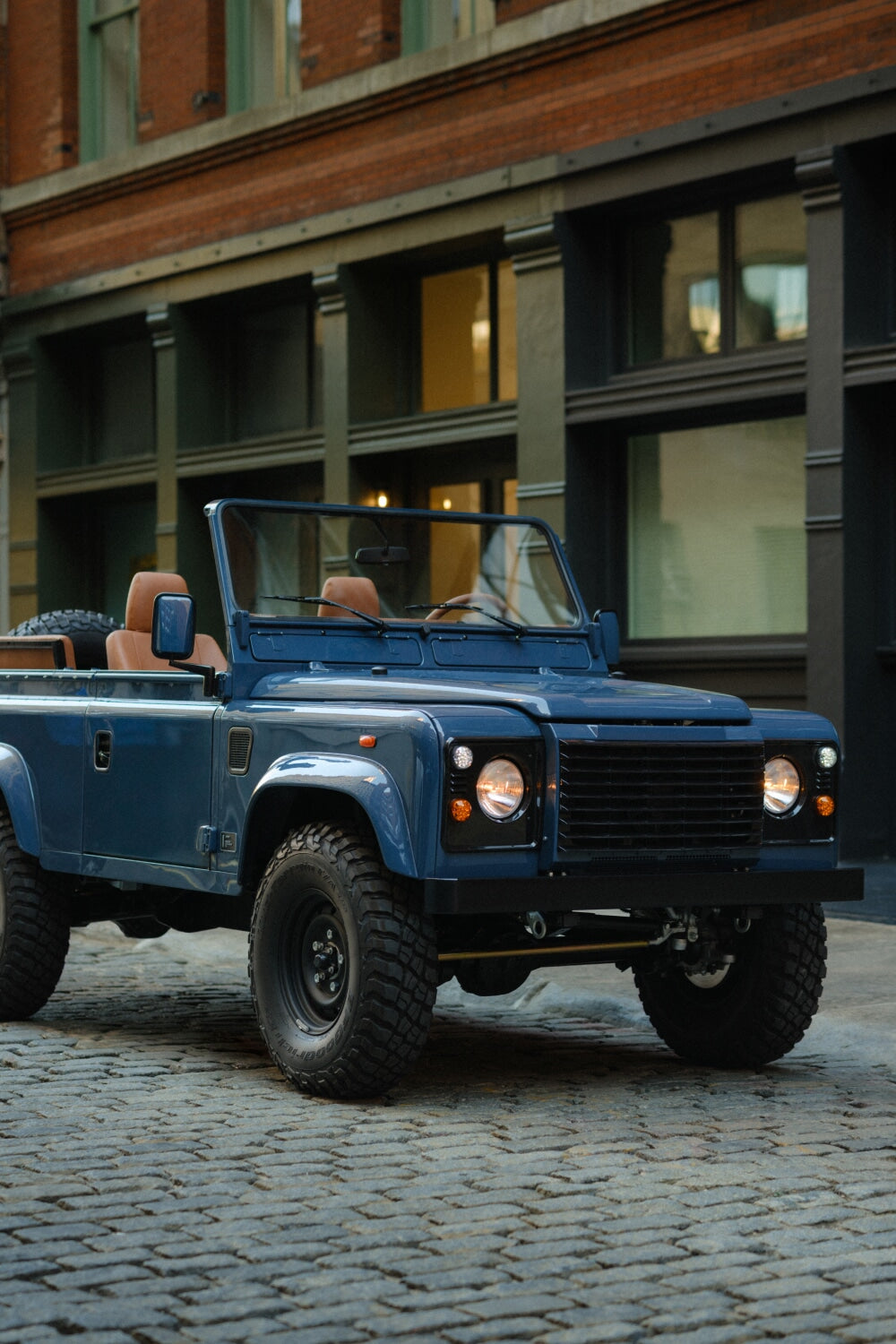 In Zusammenarbeit mit Brooklyn Coachworks haben wir einen maßgefertigten Land Rover Defender 90 kreiert – vollendet in Arles Blue mit handgefertigten Details, die Tradition, Funktionalität und zeitloses Design vereinen. Erprobt durch Zeit und Terrain, ist er bereit für alles, was die Straße – oder die Wildnis – fordert.