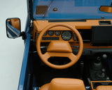 Entstanden aus einer gemeinsamen Liebe zum Handwerk, zur Tradition und zur offenen Straße, wurde dieser maßgeschneiderte Land Rover Defender 90 in Zusammenarbeit mit Brooklyn Coachworks geschaffen – dem renommierten New Yorker Atelier, das sich auf die Restaurierung und Veredelung klassischer Land Rover spezialisiert hat. Vollendet in einem glänzenden Arles Blue, einem klassischen Land Rover Farbton der 1990er Jahre, das nach der französischen Stadt Arles benannt ist, besticht er durch ein natürlich schwarzes Mohair-Canvas-Softtop und ein Interieur aus italienischem Leder in Saddle Tan.