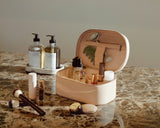 I needed a cosmetic case to hold my Westman Atelier (WA) makeup. Would have purchased the WA train case but didn't want to spend over $500 for a makeup case. THEN I saw the Monos case ad in my Pinterest feed! Wow! it has features very similar to the WA train case. I love its oval shape & the "daisy chain of elastic ribbon" to hold cosmetics in place! It is very sturdy; will not collapse in your suitcase and holds a ton of makeup! And the vegan leather is very soft!